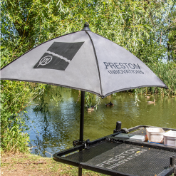 Bait Brolly este o umbrela speciala ce protejeaza eficient nadele si momeli de razele soarelui, impiedicand astfel deshidratarea acestora. Crearea unei zone de umbra deasupra momelilor si nadelor pentru a le proteja de soare, vant si ploaie, influenteaza in mod direct rezultatul unei partide de pescuit. O ploaie pe neasteptate poate duce nada la un grad de umectare ce o face de nefolosit sau in cel mai ” bun caz” ii schimba mecanica printr-o umectare suplimentara, pana la gradul la care nu mai este eficienta pentru tipul de pescuit practicat. Este livrat si un suport (adaptor), proiectat special pentru atasarea la tavile laterale din gama Preston. Unghiul de inclinare poate ajunge la 45° prin infiletarea tijei intr-un locas special conceput in acest sens.